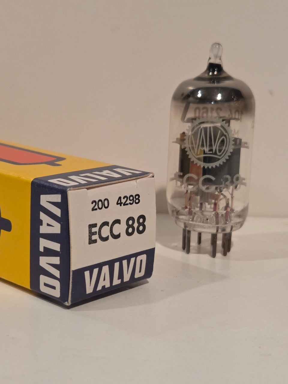 NOS Valvo ECC88 mfg in Germany by Philips. This is a premium 6922/6DJ8, with low noise and microphonics. Price is for a single tube.